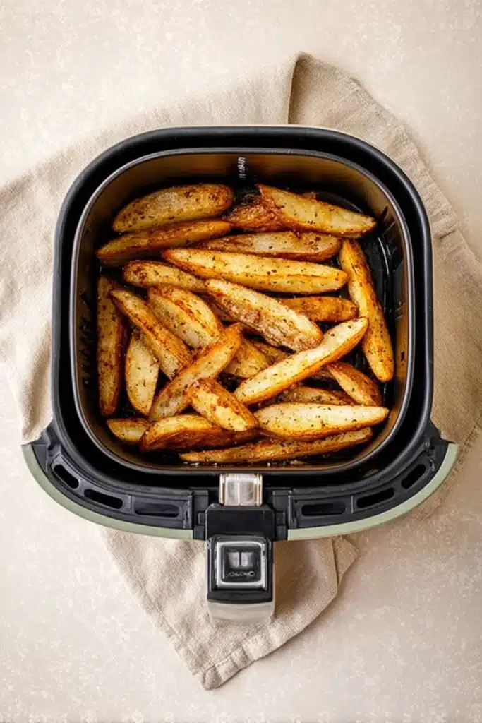 - Wash and slice the potatoes into chip shapes. Dry them well, toss with 1 tablespoon olive oil and half of the seasoning, then cook in an air fryer or oven until golden and crisp.