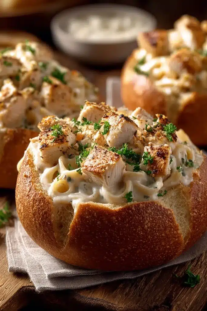 This recipe is easy and fun to make. You’ll prepare the bread bowls, whip up the Alfredo sauce, and assemble everything before serving. Each step ensures a balance of texture and flavor that makes this dish so satisfying.