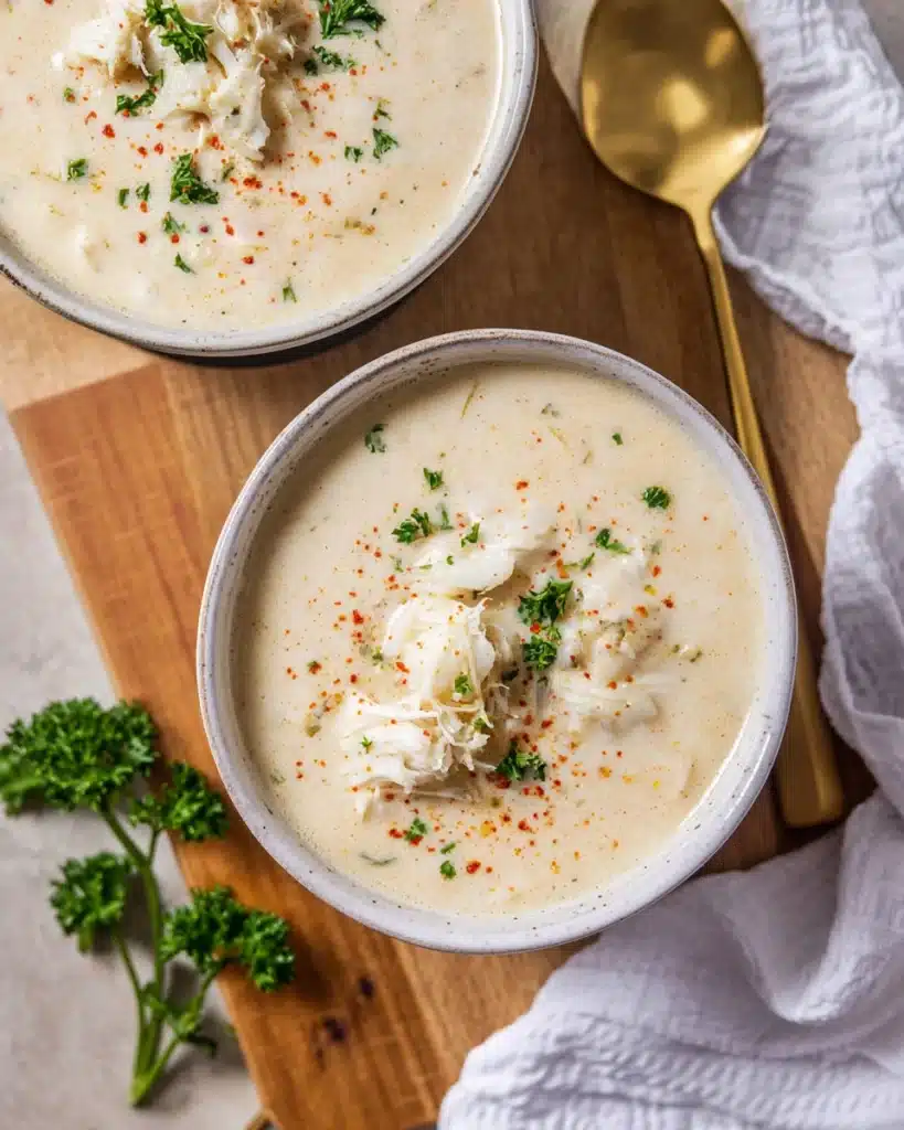 The blend of half and half with heavy cream gives the soup its signature smoothness. It’s rich without being overly thick, creating a luscious consistency that coats every bite of crab.