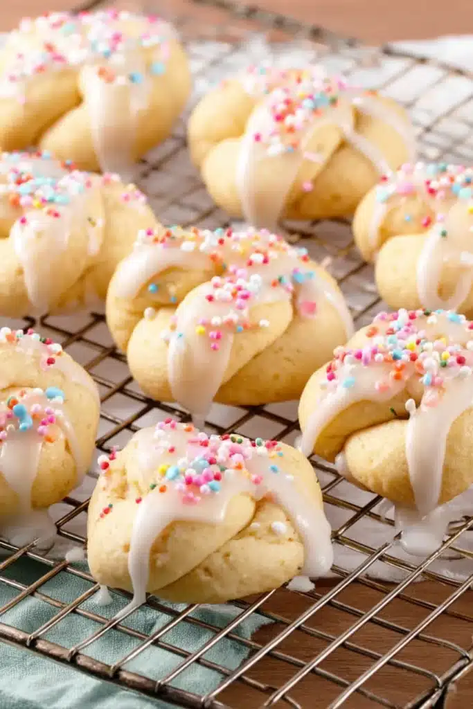 Italian Easter Cookies / Uncinetti are soft, lightly sweet knot cookies topped with a simple lemon glaze and festive sprinkles. They taste bright, tender, and perfect for Easter dessert tables. Best of all, you can make them easily with pantry staples.