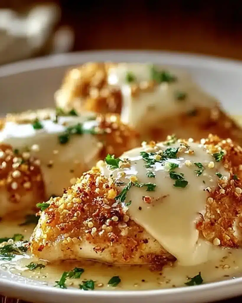 Use freshly grated Parmesan for the best flavor and texture. Even thickness is key, so pound the chicken gently before coating. If the cheese starts to brown too fast, cover it loosely with foil while baking. For a little spice, toss red pepper flakes into your breadcrumb mixture. Let the chicken rest for 5 minutes before slicing to keep every piece moist and tender. Do not skip the sear step, because that quick pan step creates restaurant-level crispiness you cannot get from baking alone.