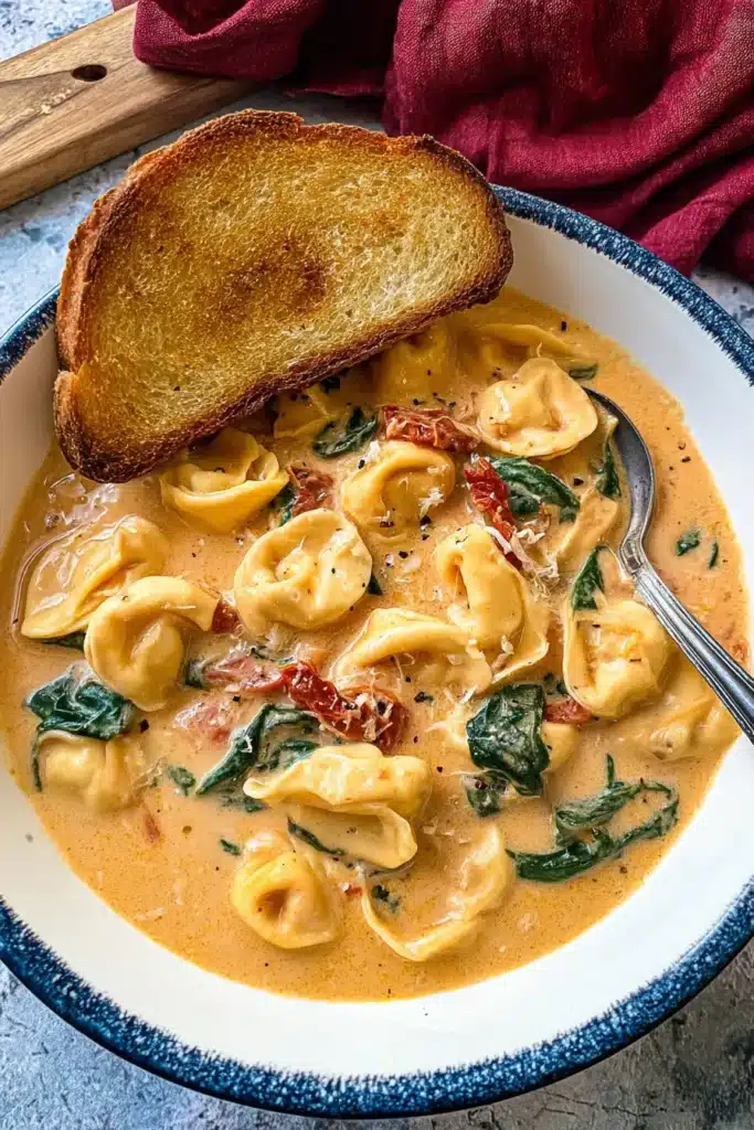 This creamy Marry Me Chicken Soup is loaded with tender chicken, sun-dried tomatoes, spinach, and pasta in a rich Parmesan broth. Perfect for cozy nights or easy weeknight meals!