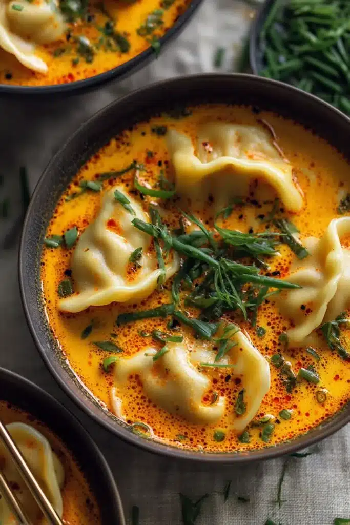 Always use full-fat coconut milk for a creamier broth. Avoid boiling the soup aggressively to prevent curdling. Letting the curry paste cook in oil first will unlock the most depth. Handle the dumplings gently — they’ll break if stirred too roughly. Keep the balance of flavors in mind: a touch of sugar softens the spice, while soy sauce adds savory depth. If you want more kick, stir in a bit of chili oil just before serving. A sprinkle of fresh scallions or a squeeze of lime at the end can brighten the flavor beautifully.