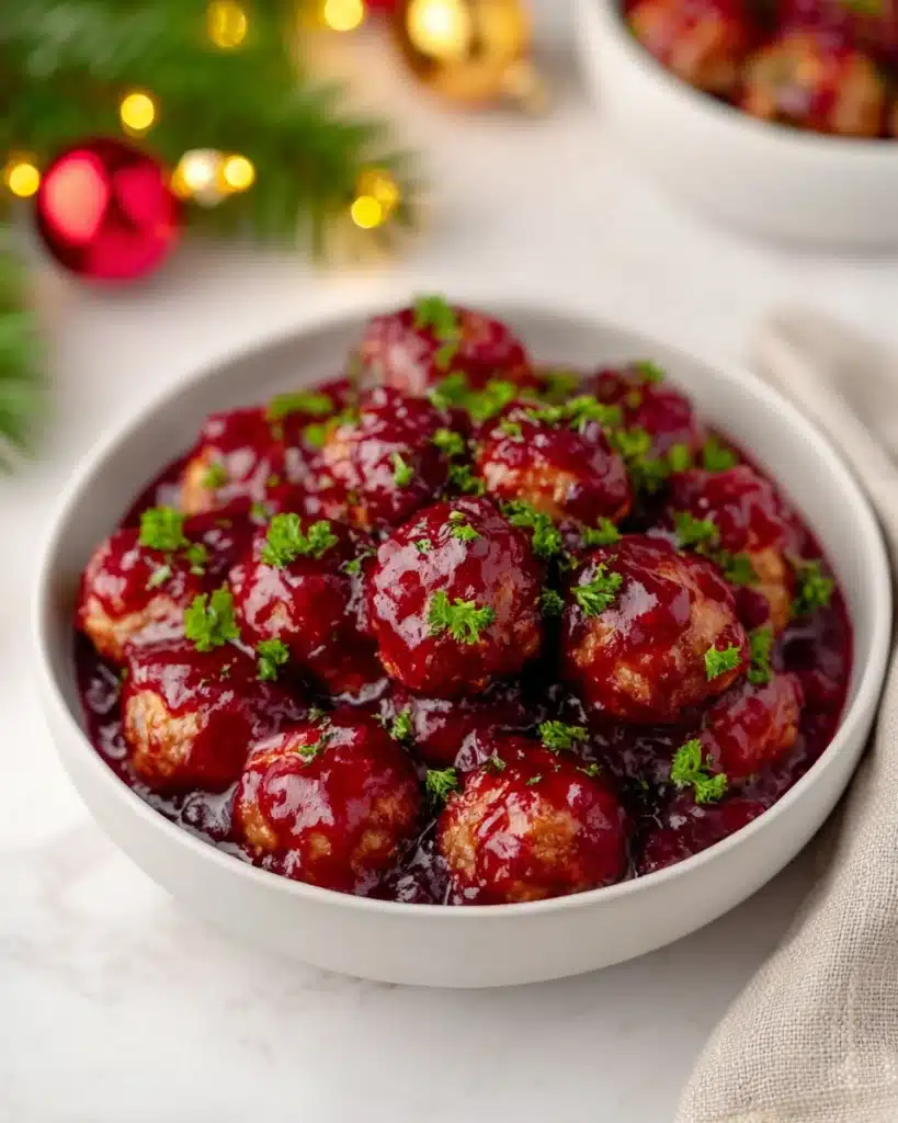 Craving something sweet, tangy, and easy for your holiday table? These Quick Cranberry Meatballs bring together juicy pork, rich sauce, and festive flavor in every bite. Theyโre the kind of dish that makes your kitchen smell amazing while being simple enough to prepare in under an hour. You can serve them as appetizers with toothpicks or pile them high over rice for dinner. The cranberry glaze gives them that cheerful Christmas sparkle everyone loves. Whether itโs a cozy dinner or a big family party, these meatballs fit right in. Plus, they reheat beautifully, making them perfect for meal prep or potlucks.