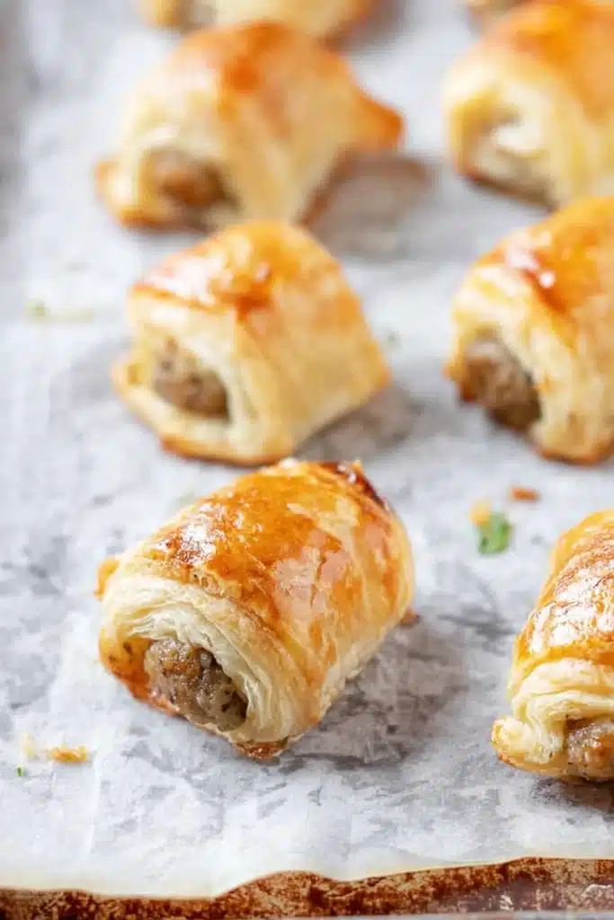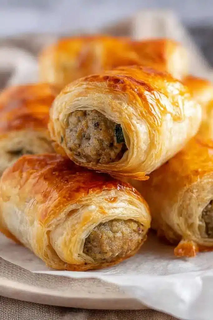 Youโll need pork sausage for the classic rich flavor. Puff pastry sheets form the flaky shell that crisps beautifully in the oven. Breadcrumbs add texture and help absorb any excess fat. Seasonings like garlic powder, onion powder, thyme, parsley, salt, and pepper infuse the rolls with savory goodness. Eggs are used to bind the mixture and create that beautiful golden crust when brushed on top.