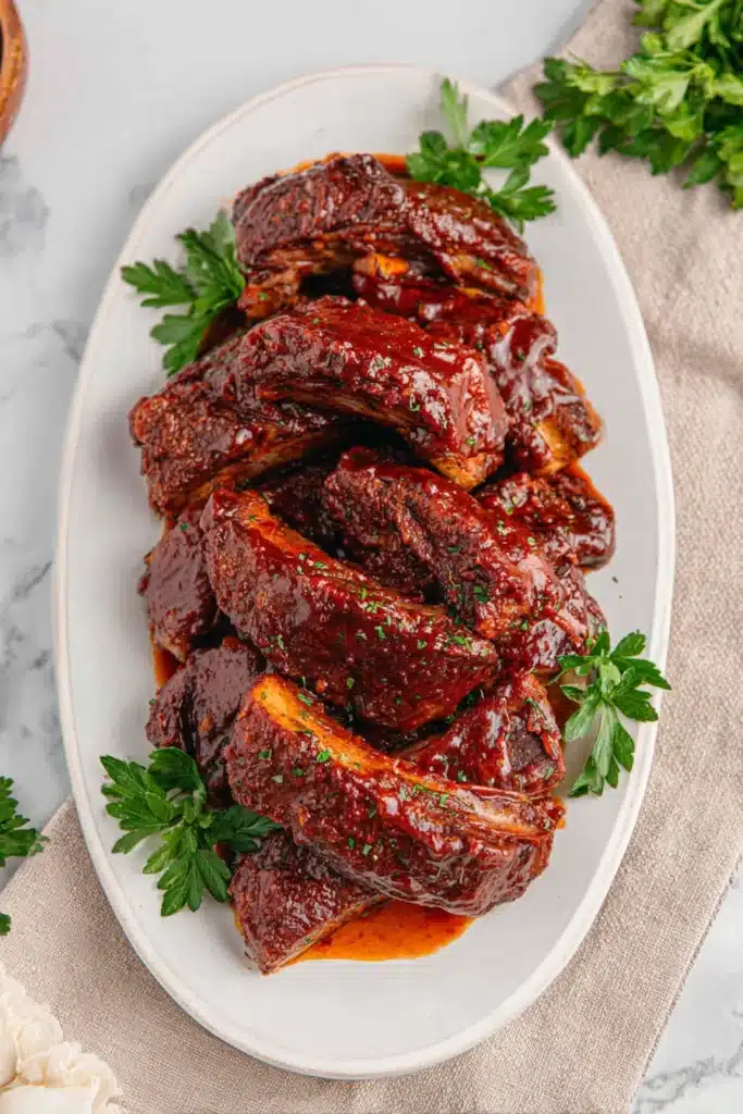 Store leftovers in an airtight container in the refrigerator for up to 4 days. For freezer prep, combine uncooked ribs and sauce in a freezer bag, then thaw overnight in the fridge before cooking. To reheat, warm gently on the stove or in the oven with a little extra sauce to keep them moist. Avoid microwaving for too long so the meat stays juicy and tender.