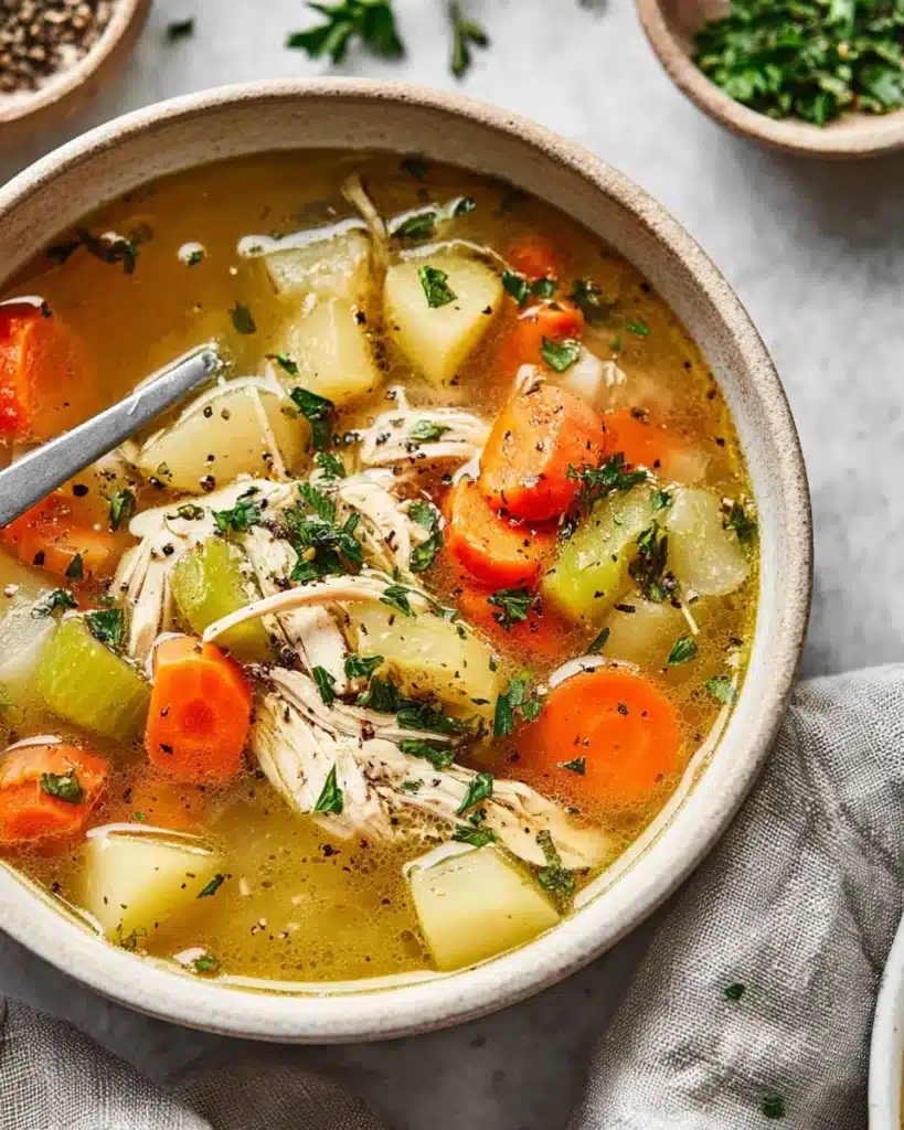 Warm up with this cozy turkey soup made from tender shredded turkey, soft vegetables, and fragrant herbs. It’s a light yet satisfying meal that comes together in about 30 minutes, perfect for using up leftover turkey after the holidays. The broth is savory and comforting, while the veggies add sweetness and texture. This soup is flexible, easy to prep, and ideal for family dinners or quick weekday lunches. You can even make it ahead, freeze it, and enjoy homemade comfort any time.