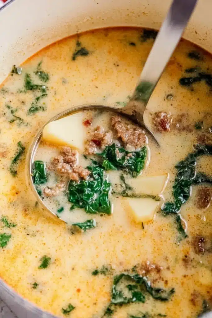 Ground Italian sausage brings bold, savory spice. Bacon adds a smoky layer that boosts every bite. A cup of heavy cream ties everything together, giving the soup its famous velvety finish.
